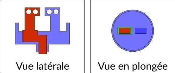 Schématiquement, on voit ici en rouge le positif, en bleu le négatif et en vert l'isolant.