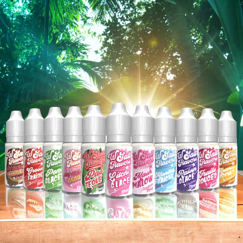 L'incontournable marque française Liquideo vous propose sa gamme de 11 e-liquides aux sels de nicotine, WSalt Flavors ! Fruités, fruités/frais, gourmands, sucrés, acidulés, mentholés... ces créations multiples aux saveurs intenses expriment leurs arômes travaillés à la perfection à travers une base PG/VG parfaitement équilibrée de 50/50.