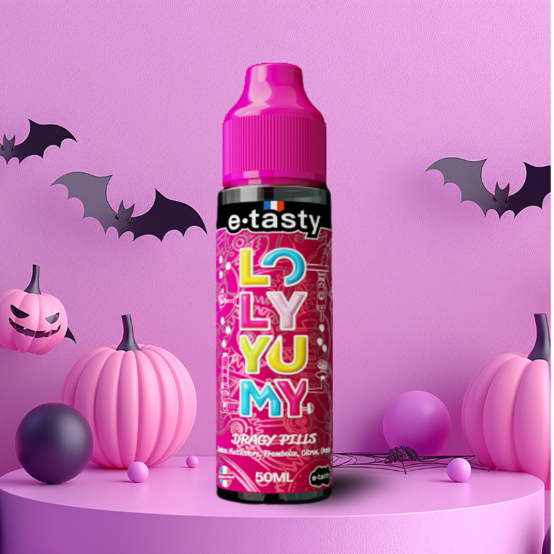 Des bonbons ou un sort ! L'e-liquide Dragy Pills 50 ml Nouvelle Version de la gamme Loly Yumy d'E-Tasty promet de vous charmer avec son cœur délicieusement fruité enrobé de sa dragée lisse et fondante. Un vrai régal pour tous les amateurs de bonbons ! Bouh !