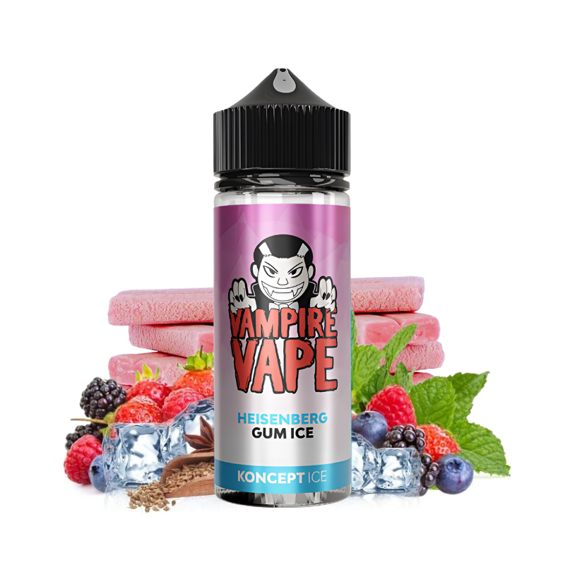 La marque anglaise Vampire Vape vous propose une version revisitée de son cultissime Heisenberg avec l'e-liquide Heisenberg Gum Ice 100 ml ! Une création toujours composée d'arômes de fruits rouges glacés au jus intense, de feuilles de menthe et d'un soupçon d'anis, ici adoucie par la présence d'un bubble gum fruité et bien sucré !