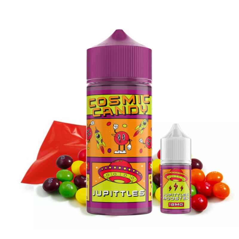 Vapez gourmand et sucré avec la gamme Cosmic Candy conçue par les aromaticiens du Secret's Lab ! Avec le pack Jupittles 50 ml, découvrez un arôme sucré capable de retranscrire la saveur des célèbres petits bonbons fruités multicolores, dans une version pack contenant un booster de nicotine pour un dosage final à 3 mg !