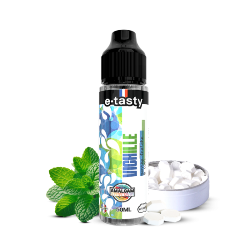 Les aromaticiens de la marque E-Tasty vous présentent la gamme Amalgam, un condensé d'e-liquides 50 ml aux arômes audacieux pour des moments de vape uniques ! Découvrez Vichille 50 ml, une association de feuilles de menthe parfumées couplées au goût unique des célèbres pastilles blanches et mentholées de notre enfance !