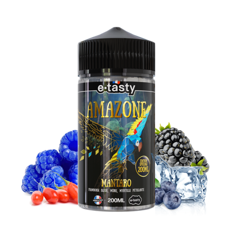 Aventurier dans l'âme ? Laissez-vous transporter par Mantaro 200 ml Édition Spéciale de la gamme Amazone du fabriquant français E.tasty. Cet incroyable mélange allie framboises bleues, myrtilles, mûres et baies de Goji dans un cocktail sauvage, frais et fruité !