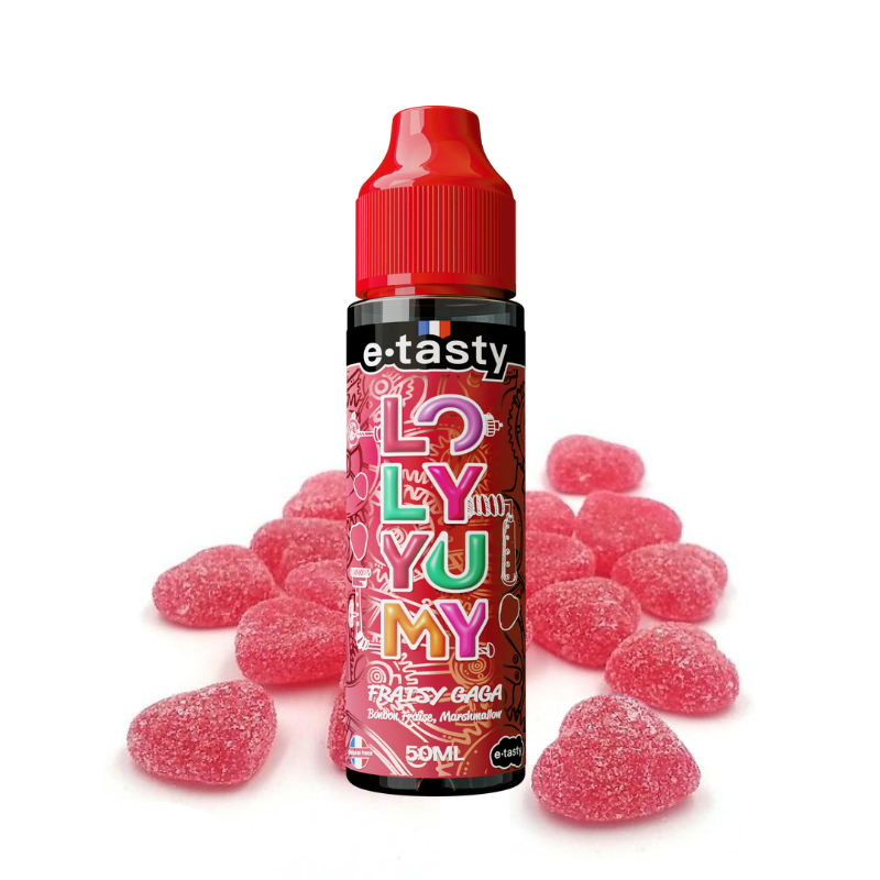 Avec l'e-liquide Fraisy Gaga 50 ml Nouvelle Version de la gamme Loly Yumy, la marque E-Tasty vous propose de profiter de toute la saveur d'un des plus célèbres bonbons à la fraise à chaque aspiration !