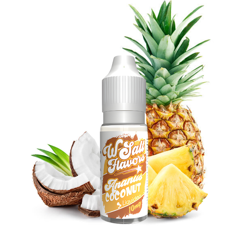 L'e-liquide Ananas Coconut de Wsalt Flavors se compose d'une base d'ananas juteux et sucré rencontrant des nuances crémeuses de noix de coco... Cette combinaison évoque instantanément des images de plages ensoleillées et de cocktails rafraîchissants, offrant une expérience de vapotage exotique et délicieuse !
