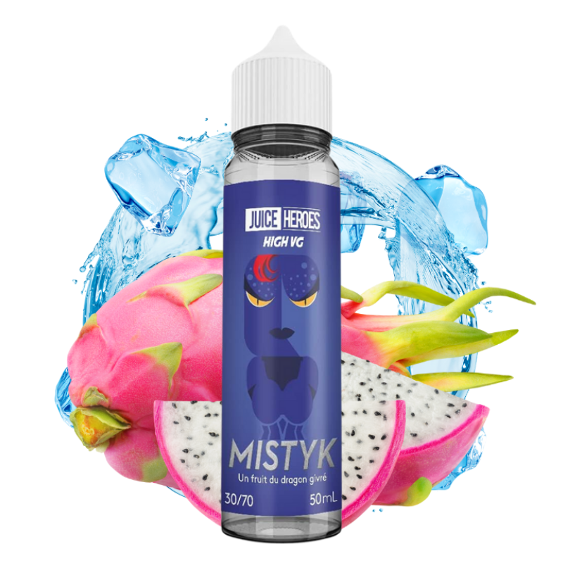 C'est une recette fraîche et fruitée toute en simplicité que vous propose la marque Liquideo avec son e-liquide Mistyk de la gamme Juice Heroes ! Aspirez, et profitez d'une vapeur douce et acidulée aux arômes de fruit du dragon, réveillés par une généreuse dose de fraîcheur !