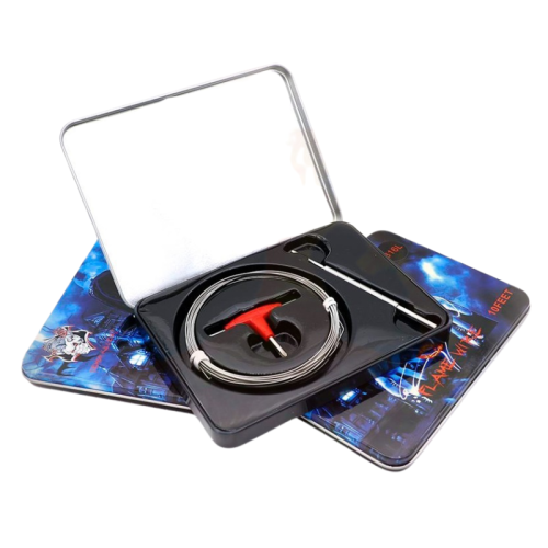 Proposé dans une superbe boîte en métal contenant un tournevis mulfiction et une double tige pour coil de 0,2 et 0.3 mm de diamètre.