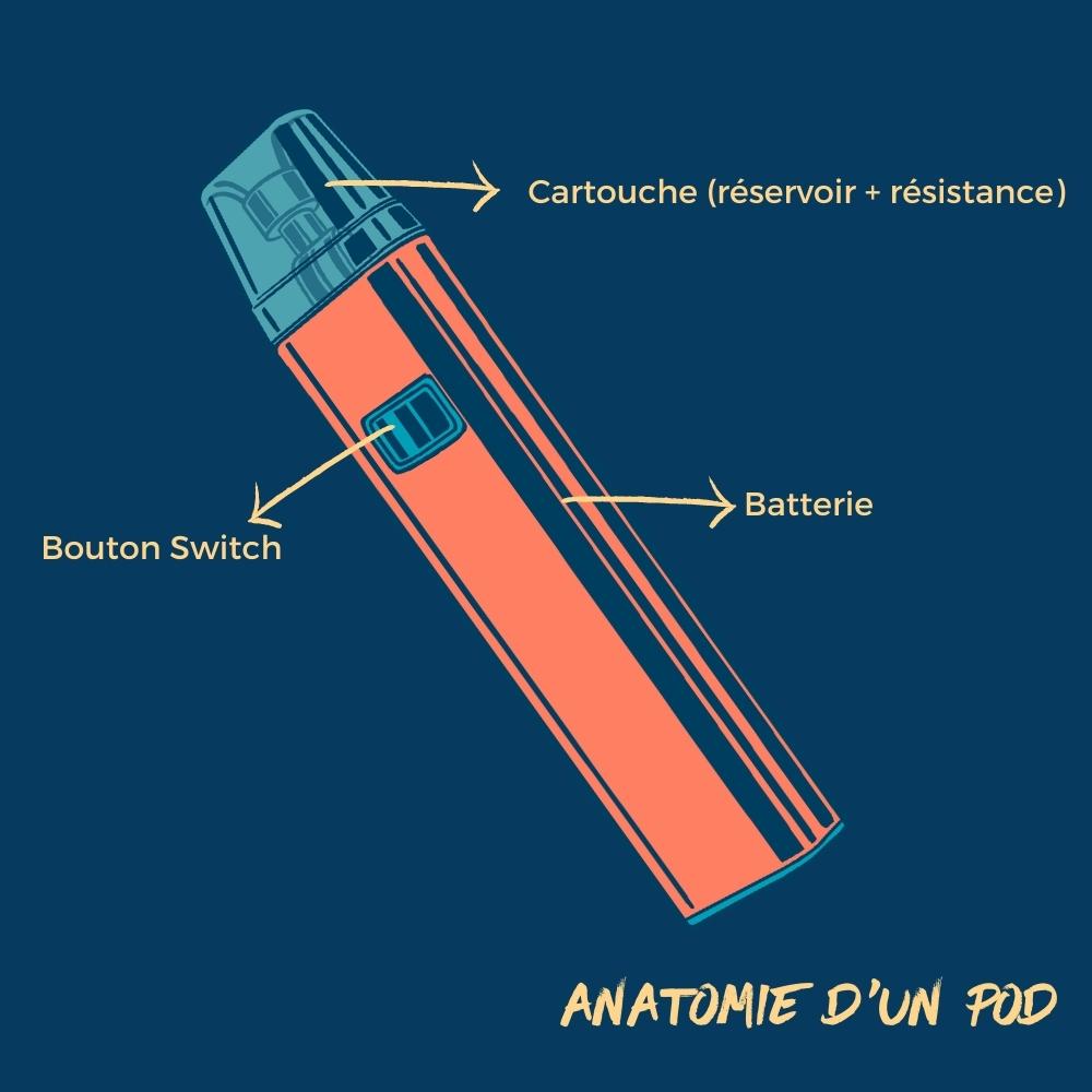 Un pod est un type de cigarette électronique compact et facile à utiliser, idéal pour les débutants et les vapoteurs à la recherche de simplicité. Un pod est composé de deux éléments dépendants l’un de l’autre. Il y a d’une part la batterie, d’autre part la cartouche.