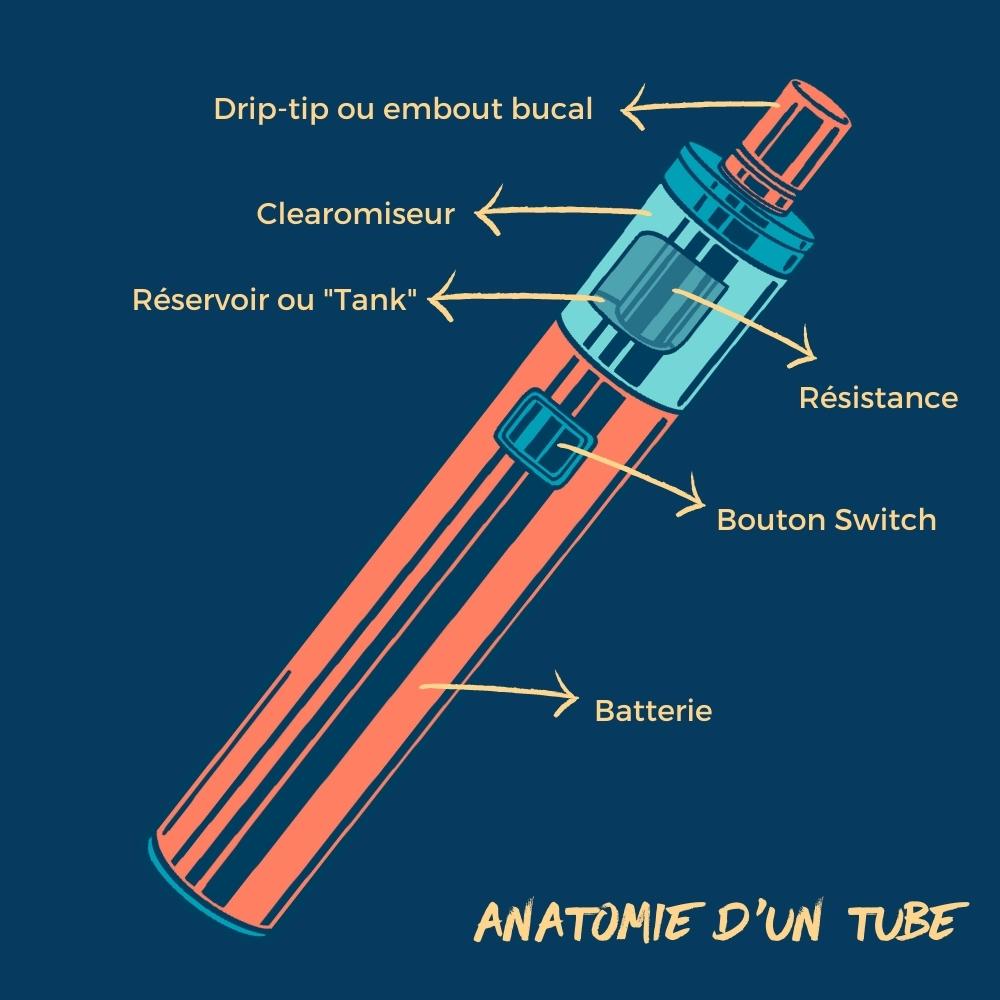 Concrètement, une cigarette électronique est composée de plusieurs éléments essentiels :