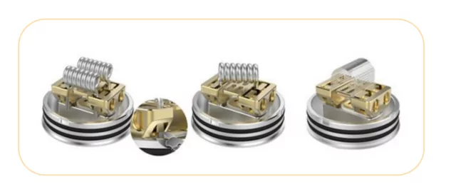Si le clearomiseur dispose d’une base permettant de visser des résistances préfabriquées, l’atomiseur reconstructible se différencie quant à lui par sa base qui permet de monter sa propre résistance.