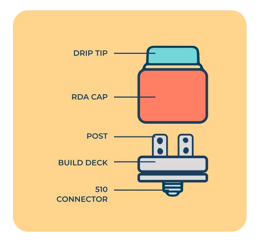 Parmi les différents atomiseurs reconstructibles, il existe l’atomiseur RDA (Rebuildable dripper) plus communément appelé « Dripper ». Grand classique de la vape, ce dernier ne possède pas de réservoir (ou tank) permettant de stocker un certain volume d’e-liquide. Il est idéal pour faire du power-vaping et faire de gros nuages de fumée.