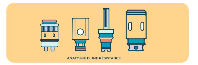 La résistance pour atomiseur reconstructible (ou coil) se diffère des résistances classiques vendues par les fabricants pour les clearomiseurs. Pour réaliser sa propre résistance, il faut au préalable se munir d'un atomiseur reconstructible ou bien d'un clearomiseur compatible avec un plateau RBA.