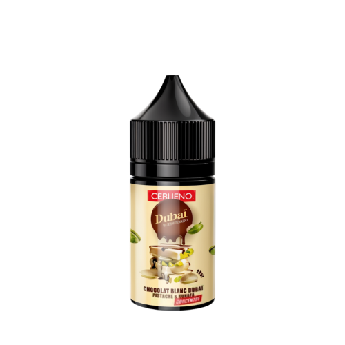 Laissez-vous embarquer pour un voyage gustatif avec le concentré Dubaï Chocovape White 30 ml de Cebueno. Ce concentré DIY dévoile une recette ultra gourmande mêlant chocolat blanc crémeux, pistaches croquantes et kunafa délicatement fondant.