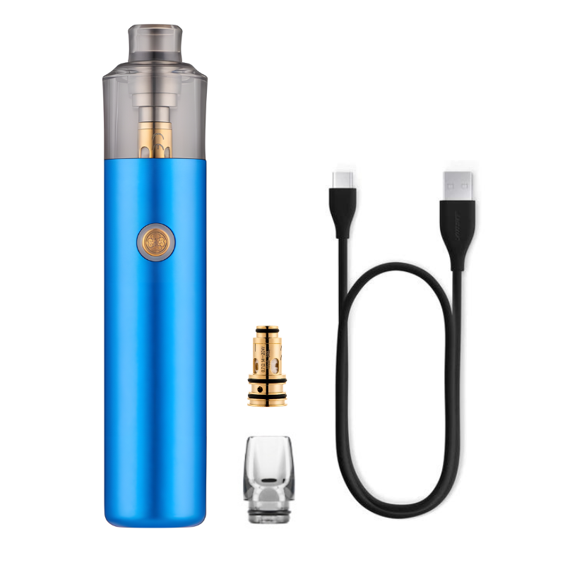 Équipée de la cartouche dotStick Revo d'une contenance de 3,5 ml, la dotStick Revo 1.5 se recharge totalement en à peine quelques minutes, grâce au câble USB-C fourni dans le pack. Détail qui a son importance : la présence d'un bouton switch doré et gravé au logo de la marque, entouré d'une led dont la couleur vous indique en temps réel le niveau de batterie restant !