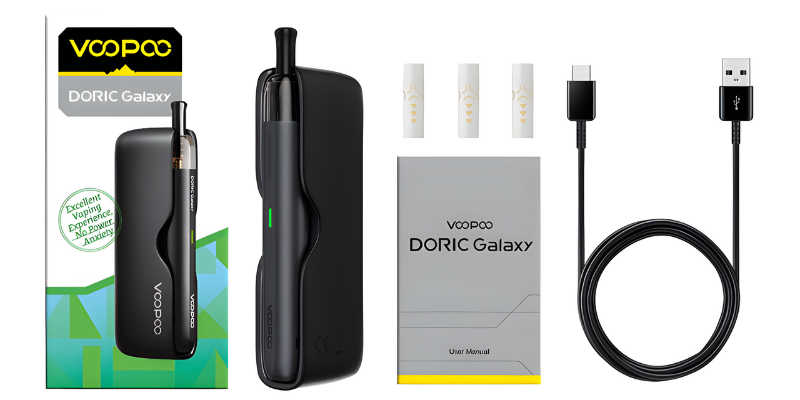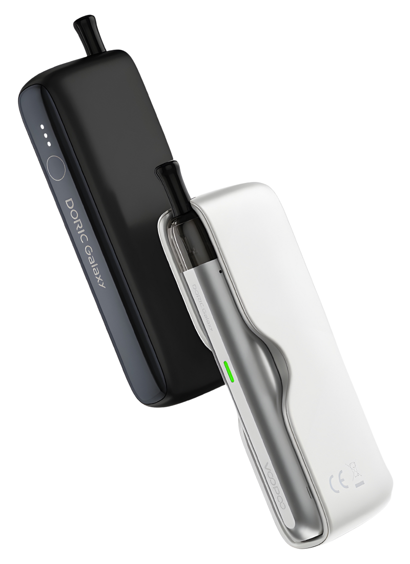 Voopoo joue la carte du minimalisme et de la polyvalence avec le kit Pod Doric Galaxy, une cigarette électronique tubulaire en alliage d'aluminium de 500 mAh accompagnée de sa powerbank magnétique de 1800 mAh.