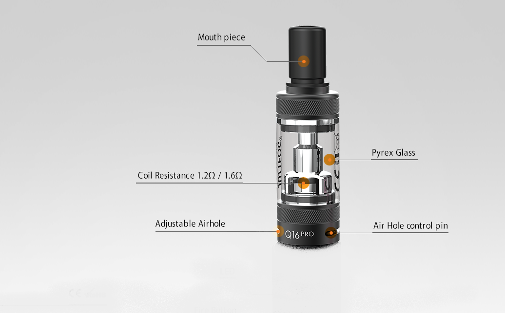 Un excellent matos que ce clearo Q16 Pro de Justfog dont je suis tombé amoureux (le kit complet est une tuerie pour la vape serrée MTL pour vaper du CBD ou du sel de nicotine). Fournis avec une résistance de 1,6ohm, ce qui m'a permis de tester la différence avec les 1,2ohm. La 1,6ohm est plus approprié pour une vape serrée MTL, la 1,2ohm permettant, si on le souhaite une vape DL restrictive, la 1,2Ohm me parait plus polyvalente. Honnêtement j'aime les deux résistances pour ce clearo. Facile à utilisé, bien construit et une sensation proche des cigarettes roulées que j'apprécie pour ma part sur le tirage. Je l'utilise pour du sel de nicotine, c'est très économique (une bouteille de 10ml en 20mg me faisant environ la semaine) et surtout ... c'est vraiment efficace pour diminuer ou arrêter le tabac ! Comme quoi le choix d'un bon matos est important et les conseils insistant sur l'utilisation de sel de nicotine et d'une vape serrée ont carrément raison ! Je recommande. En espérant qu'on puisse avoir un jour le modèle Q16 Pro + que l'on voit sur le site officiel de la marque (modèle légèrement plus grand avec un réservoir plus grand et une autonomie de la batterie plus étendue passant de 900 à 1100mah).