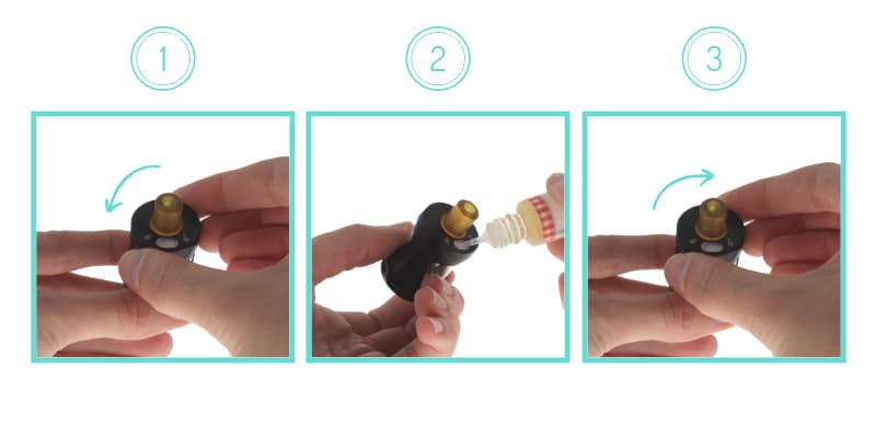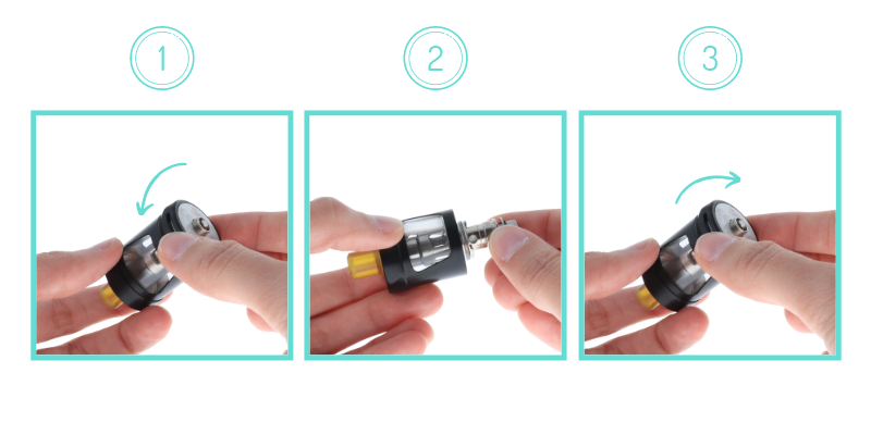 Le clearomiseur Zenith II bénéficie d'un système rotatif amélioré. Pour remplir le réservoir, il suffit de tourner le top-cap vers la gauche, de remplir le réservoir en insérant l'embout-pipette de votre eliquide dans le petit orifice dédié à cet effet. Tournez ensuite le top-cap vers la droite afin de le refermer.