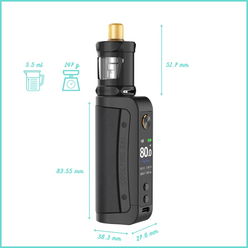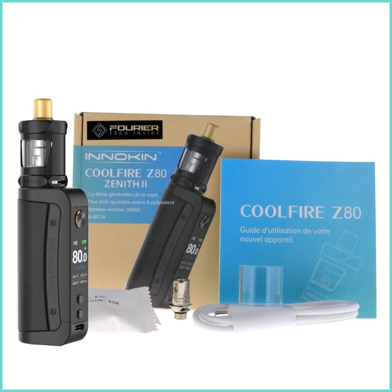 D'une grande simplicité d'utilisation, le kit Coolfire Z80 Zenith II concentre ses atouts sur l'autonomie et la liberté de l'utilisateur dans sa pratique de la vape, ainsi que sur la protection de la résistance. Doté d'un câble de charge rapide USB-C, il possède aussi la gamme complète de protections de sécurité intégrée.