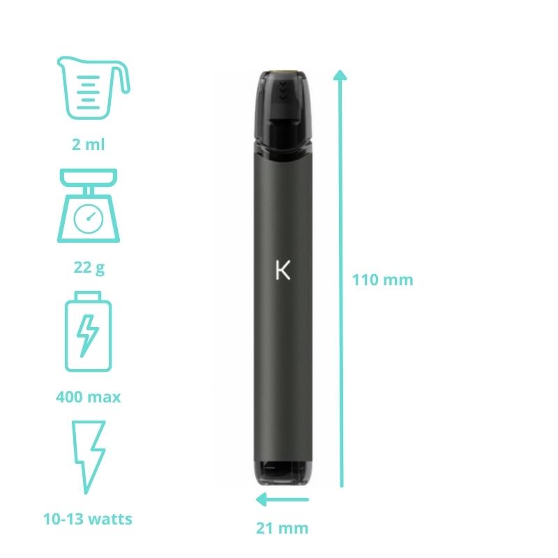 Avec son format, et son drip-tip en filtre, rappelant une cigarette traditionnelle, le Pod Kiwi permet une transition en douceur et efficace pour les fumeurs souhaitant passer à la vape.