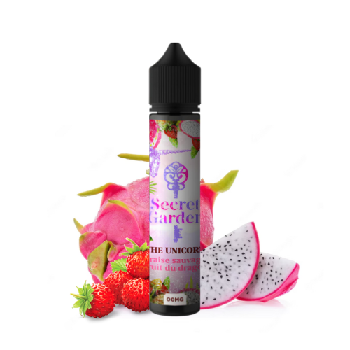 Secret's Lab vous propose The Unicorn 50 ml, un e-liquide à l'arôme de fraises sauvages accompagnées de fines tranches de fruit du dragon à la chair acidulée !