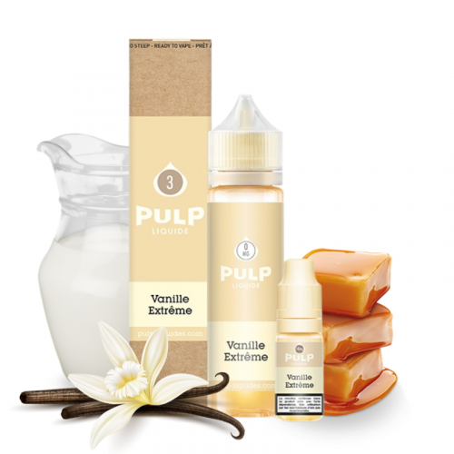 La marque française Pulp vous propose Vanille Extrême 60 ml, un e-liquide grand conditionnement aux arômes gourmands de vanille et de caramel accompagnés d'une pointe de lait chaud...