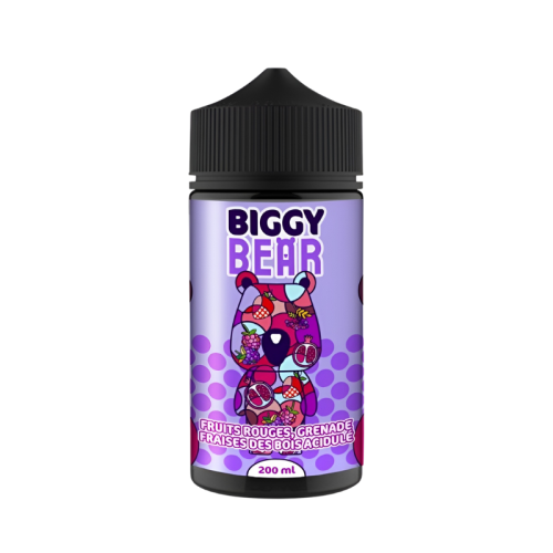 Découvrez Fruits Rouges Grenade Fraises des Bois Acidulé 200 ml signé Biggy Bear, et vapez un e-liquide très grand conditionnement aux arômes intenses de fruits rouges sucrés et de grenade à la saveur douce !