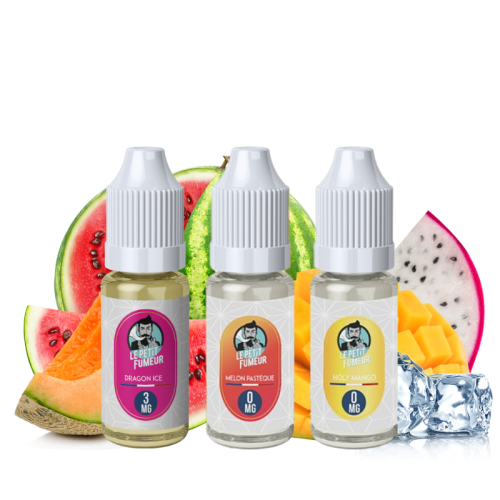 - Le Melon Pastèque 10 ml : saveurs melon et pastèque glacée.