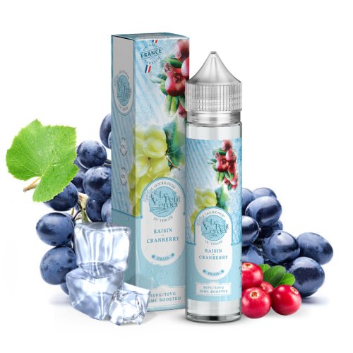Découvrez l'e-liquide grand conditionnement Raisin Cranberry Frais 50 ml ! Les aromaticiens de la marque française Le Petit Verger réinventent leur recette composée d'arômes de jus de raisin noir sucré et de baies de cranberry en y ajoutant une généreuse dose de fraîcheur !