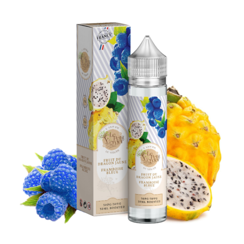 Fruit du Dragon Jaune Framboise Bleue vous est proposé dans un flacon de 70 ml rempli à hauteur de 50 ml d'e-liquide. Vous aurez la possibilité d'ajouter directement dans la bouteille jusqu'à deux boosters de nicotine ou de CBD éventuels !