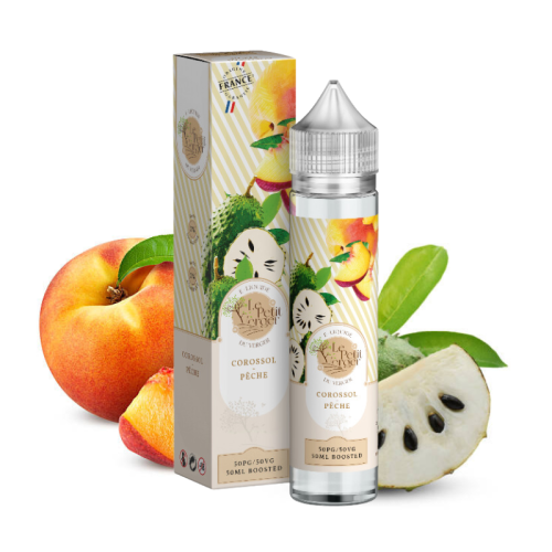 Le Petit Verger vous propose une nouvelle création composée de chair de corossol acidulé et de pêche au jus sucré. Avec l'e-liquide Corossol Pêche 50 ml, Savourea continue dans le fruité estival !