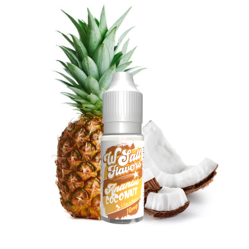 Découvrez Ananas Coconut 10 ml de la gamme Wsalt Flavors signée Liquideo, un e-liquide format 10 ml aux sels de nicotine saveur ananas et noix de coco !