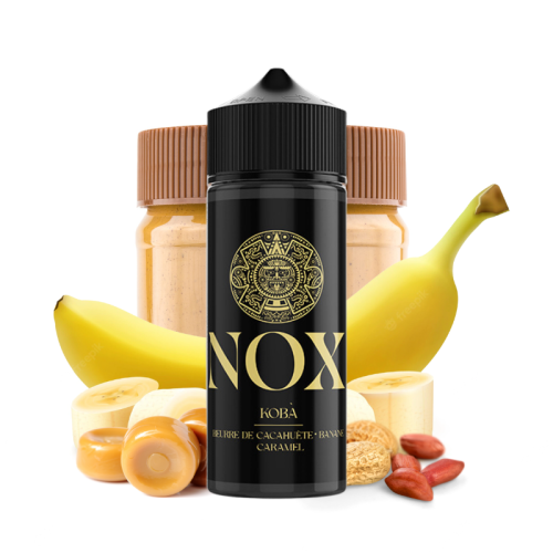 Le Secret's Lab vous propose sa gamme Nox, une ligne d'e-liquides au graphisme luxueux inspiré de l'âge d'or de la civilisation maya et aux recettes riches en saveurs ! Découvrez l'e-liquide Kobà 50 ml, une création gourmande aux arômes de bananes nappées de beurre de cacahuètes et de caramel fondant...