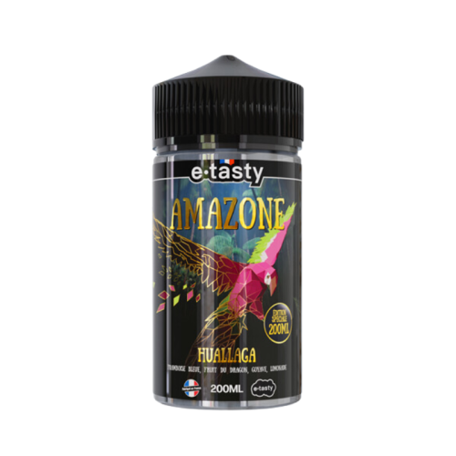 Avec Huallaga 200 ml Édition Spéciale, vapez un e-liquide XXL signé E-Tasty pour sa gamme Amazone aux arômes frais et fruités de framboise bleue, fruit du dragon, goyave, limonade et mûre sur un lit de glace pilée !