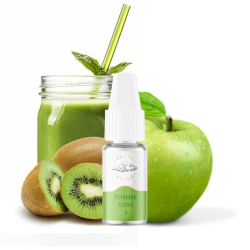 Vapez un smoothie intense aux arômes de pomme verte et de kiwi avec l'e-liquide Pomme Kiwi 10 ml, une création qui décoiffe imaginée par les aromaticiens de chez Petit Nuage !
