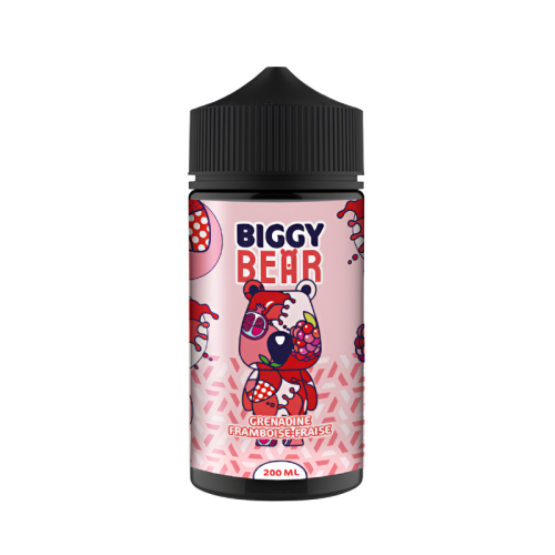Avec l'e-liquide Grenadine Framboise Fraise 200 ml, la marque française biggy bear vous invite à vaper la plus délicieuse des boissons estivales, accompagnée de fruits rouges au jus bien sucrés !