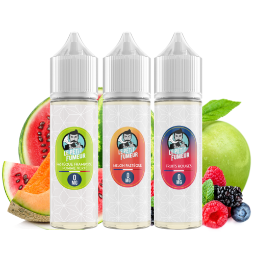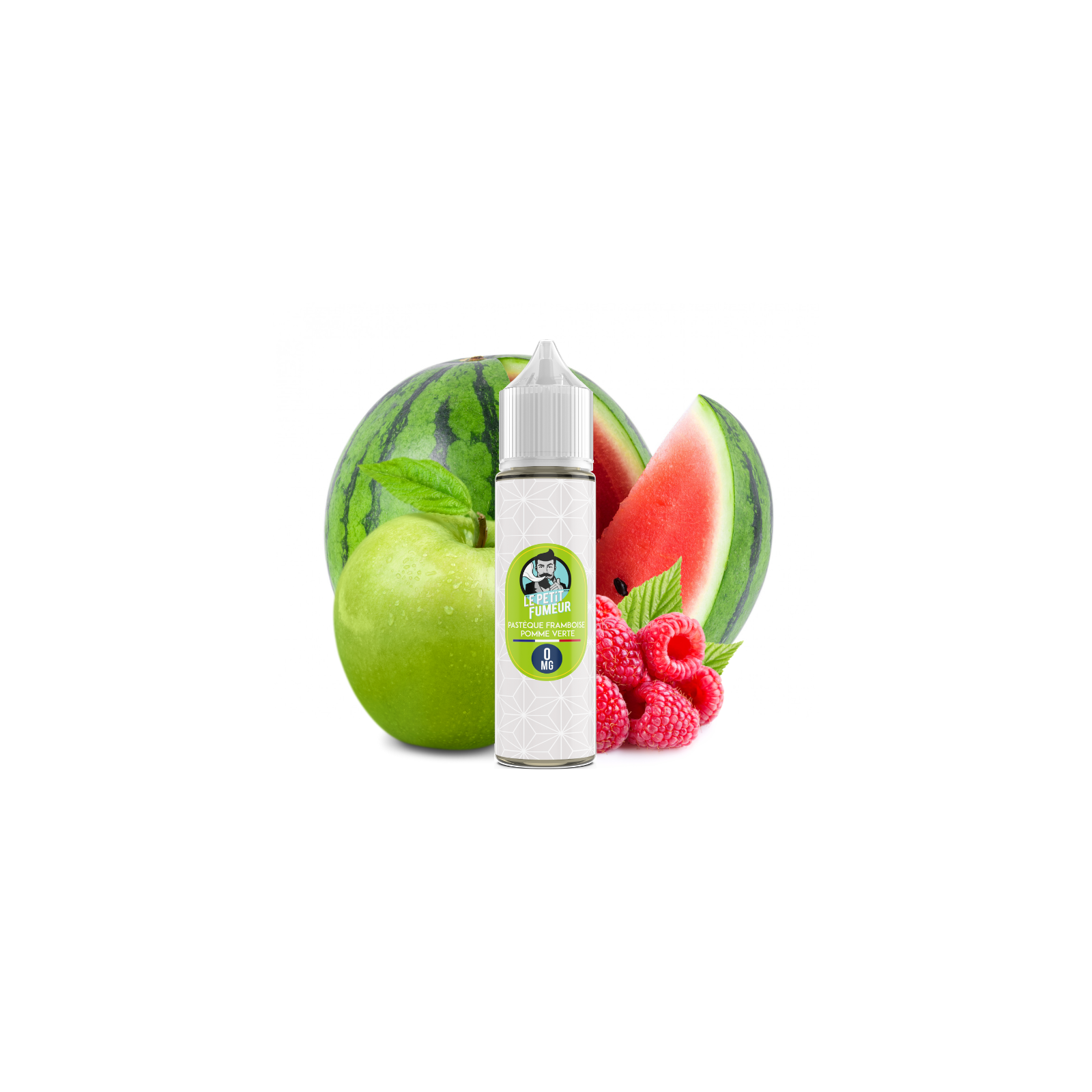 - Le Pastèque Framboise Pomme verte 50 ml : saveurs pastèque, framboise et pomme verte.