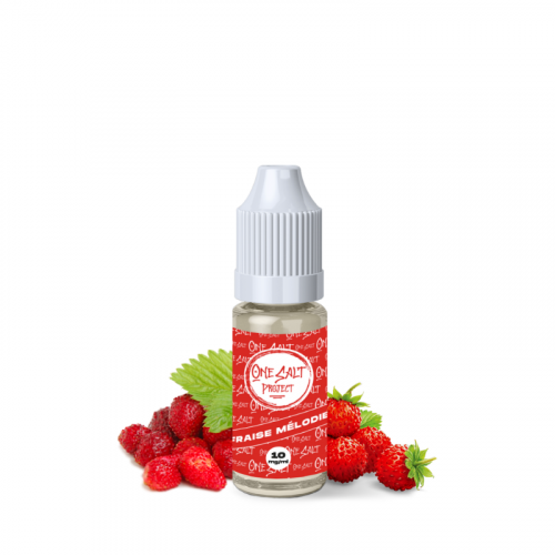 Fraise Mélodie de One Salt est conditionné dans une fiole de 10 ml surmontée d'un embout fin afin de remplir votre clearomiseur ou atomiseur facilement.