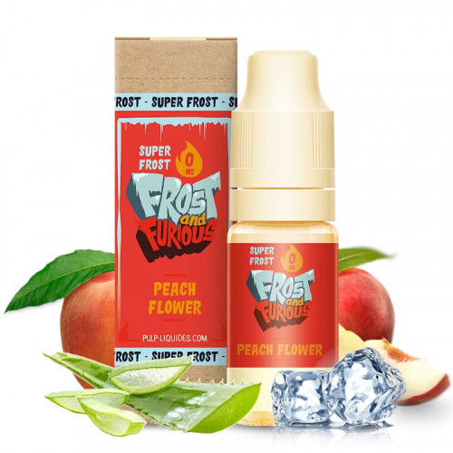 Peach Flower Super Frost de Pulp est un e-liquide fruité et frais au goût de peche, d'aloe vera et de frais.