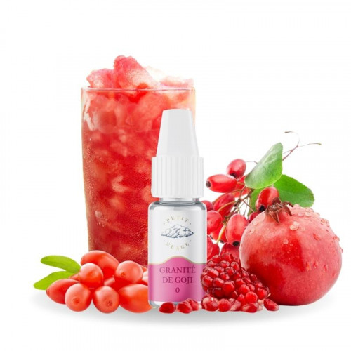 Granité de Goji de Petit Nuage est un e-liquide fruité au goût de baies de Goji, de cassis et de grenade.