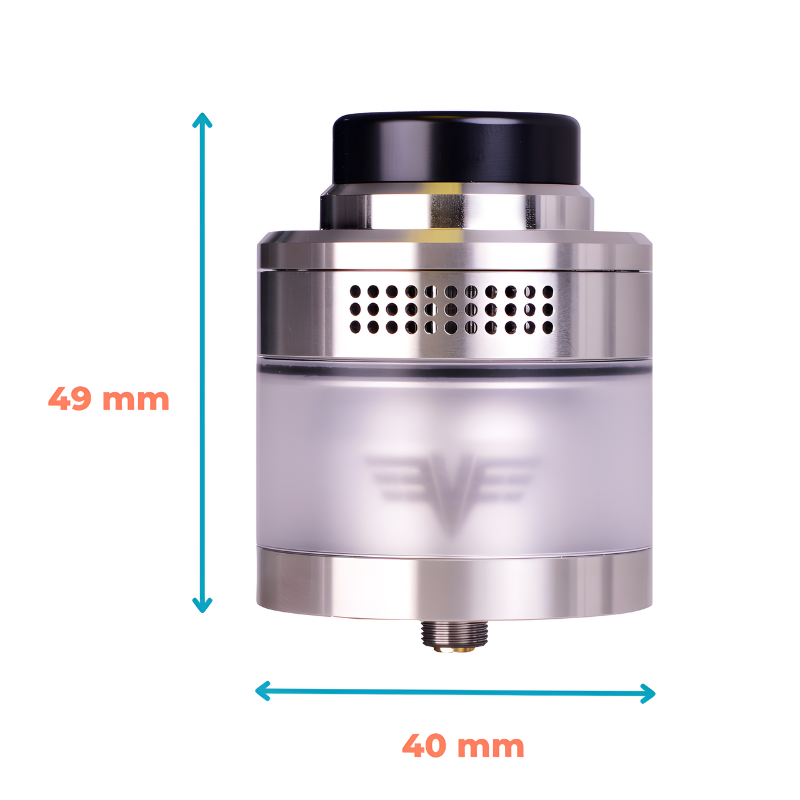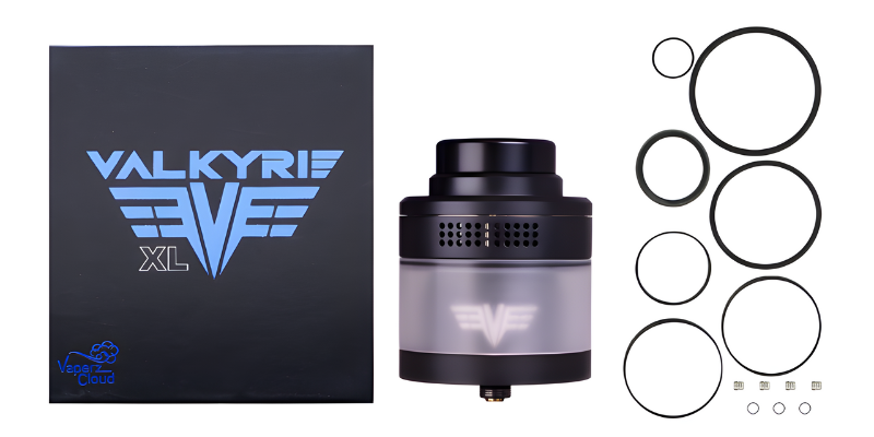 C'est un véritable titan que vous propose le géant américain Vaperz Cloud avec le Valkyrie XL RTA, un atomiseur reconstructible à l'usinage exceptionnel doté d'un gigantesque réservoir de 9 ml. Ce modèle tout simplement hors du commun avec ses dimensions monumentales de 40 mm de diamètre pour une hauteur de 42 mm (hors pin 510 et hors drip-tip) séduit d'emblée par son armature ultra qualitative en acier inoxydable et aux coloris sobres, qui promettent de composer de sublimes set-ups avec les plus imposantes boxs du marché.