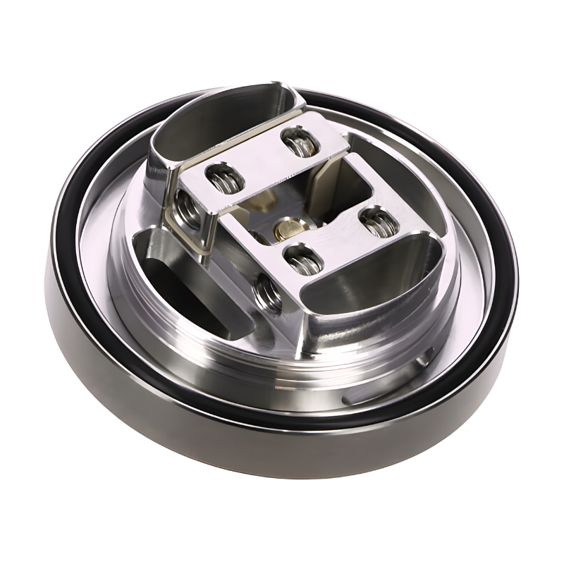 C'est un imposant plateau de montage postless pouvant accueillir deux coils des plus complexes qui prend place sous la cloche en ultem imaginée pour maximiser le rendu de saveurs. Au-dessus, un réservoir de 9 ml équipé d'une bague d'airflow de 66 trous vous offre quant à lui une autonomie encore rarement vue. Intelligemment placé au sommet de l'atomiseur afin d'éviter les fuites dues à la condensation, ce système de débit d'air vous permet de passer d'un tirage aérien intense à un ressenti sensiblement plus restrictif.