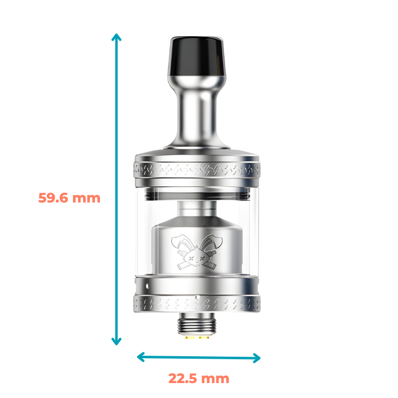 Le Dead Rabbit MTL RTA 2 dispose d’un airflow réglable précis, vous permettant d’ajuster votre tirage selon vos préférences personnelles avec une précision impressionnante. Son réservoir de 2 ml, extensible à 4 ml avec un pyrex supplémentaire fourni, garantit de longues sessions de vape sans avoir à recharger fréquemment. De plus, il est doté d’un drip-tip 510 long remplaçable pour un confort et une esthétique optimisés.