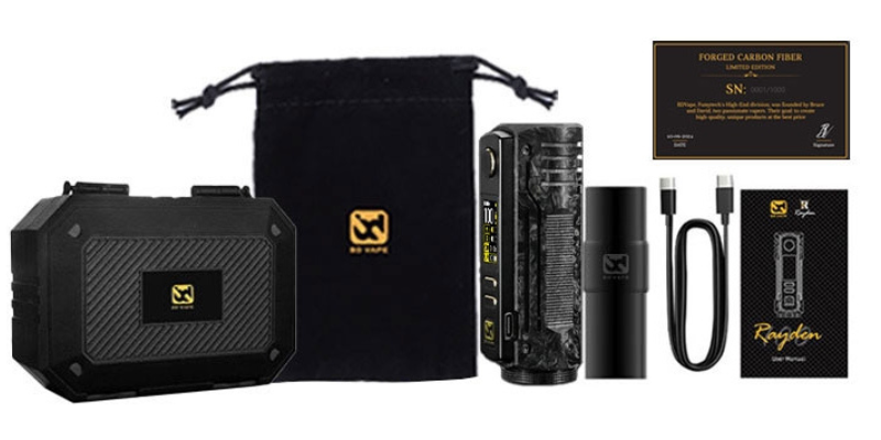 La Box Rayden 100 Limited Edition BD Vape vous est fournie avec une carte d'authentification numérotée. Ce modèle d'exception se révèle parfait pour les collectionneurs et les amateurs de mods uniques et durables aux finitions irréprochables.