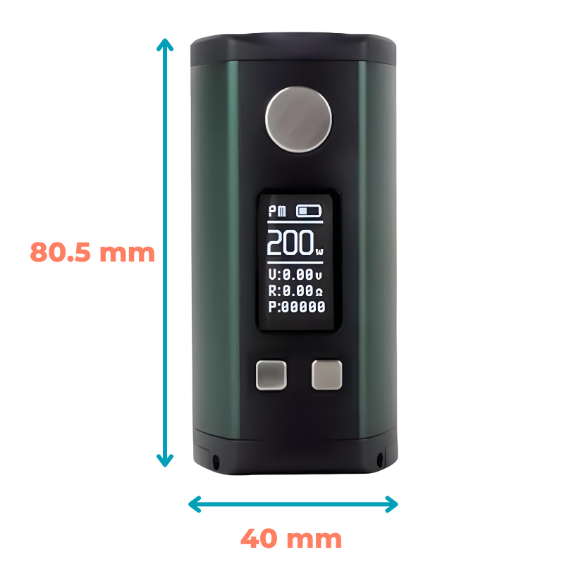 Cette box atteint 200W et utilise deux batteries 18650 (vendues séparément). Elle est équipée d'un chipset exclusif performant et d'un écran couleur facile à utiliser qui permet de naviguer entre les modes de vape disponibles (Wattage Variable, Bypass et Contrôle de température).