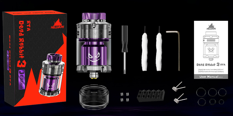Le Dead Rabbit 3 RTA J Edition de Hellvape est un atomiseur reconstructible haut de gamme, inspiré de l'univers du Joker. Avec son design miroir poli et ses gravures laser distinctives, il se distingue par une esthétique soignée et audacieuse. Disponible en trois coloris éclatants — Shiny Gold Black, Shiny SS Blue et Shiny Gunmetal Purple —, il est conçu pour les amateurs de personnalisation et de performances.