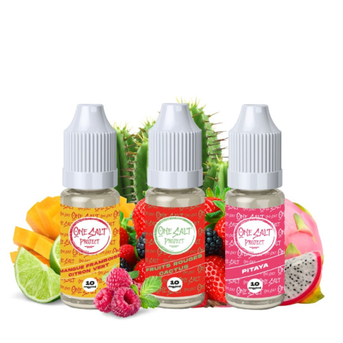 Avec ce trio d'e-liquides découvrez trois délicieuses saveurs fruitées en version sels de nicotine ! Fruits rouges/cactus, mangue/framboise/citron vert et fruit du dragon... Les aromaticiens de la marque française One Project vous proposent ces e-liquides 10 ml aux arômes intenses au taux de nicotine de 10 ou 20 mg/ml.