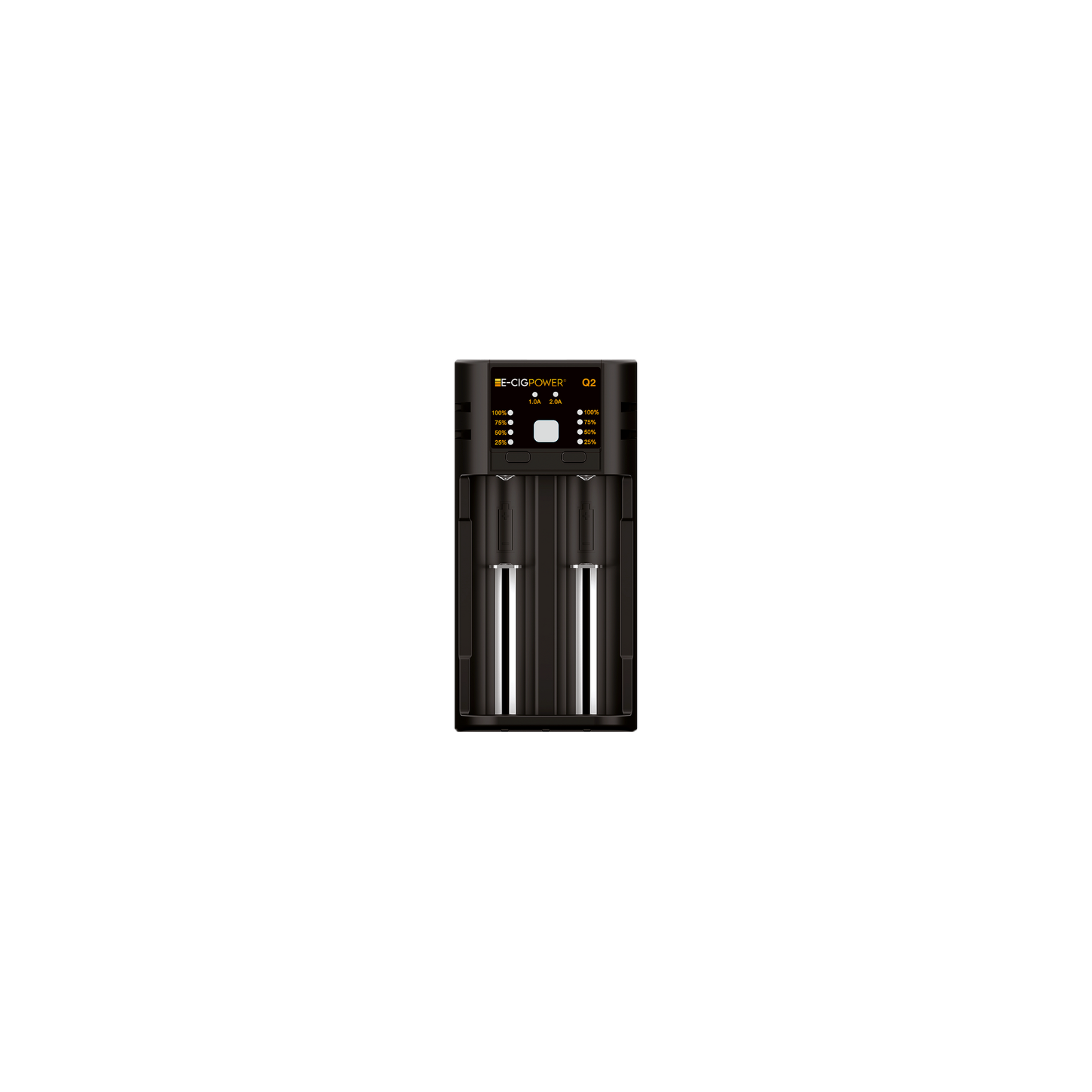 - 1 chargeur Accus Q2 Micro USB Led - E-Cig Power : intuitif et pratique, il vous permet de charger deux accus en même temps. E-Cig Power a pensé à tous les profils de vapoteurs puisque ce chargeur peut accueillir tous types d’accus, du 10440 au 26700. En 3h à peine, vous pourrez recharger intégralement les accus insérés. Grâce au bouton central et aux LEDS situées sur le dessus du chargeur, il vous sera possible de sélectionner le type de voltage (1A ou 2A) que vous souhaitez. Les LEDS positionnées de chaque côté du bouton central vous indiquent le pourcentage de chargement de vos accus ! Pour le faire fonctionner, il vous suffit simplement de brancher le câble micro-USB au chargeur et bien sûr de le brancher au bloc du secteur !