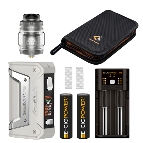 - 1 box Aegis L200 Classic - Geekvape : conçue en acier inoxydable et en silicone, cette box est dotée de la technologie Triproof IP68, la rendant non seulement waterproof mais lui conférant également une résistance accrue aux chocs et à la poussière. Proposée en six coloris, elle se pare d’une poignée latérale en cuir, apportant confort et élégance à ce modèle plutôt massif aux dimensions généreuses de 96 x 64.46 x 33 mm. Capable de grimper jusqu’à 200 watts de puissance et équipée d’un pin de connexion 510, l’Aegis L200 Classic pourra accueillir n’importe quel atomiseur de 33 mm de diamètre. De quoi ravir les vapoteurs à la recherche d’une cigarette électronique présentant une excellente autonomie et amateurs de cloud chasing !