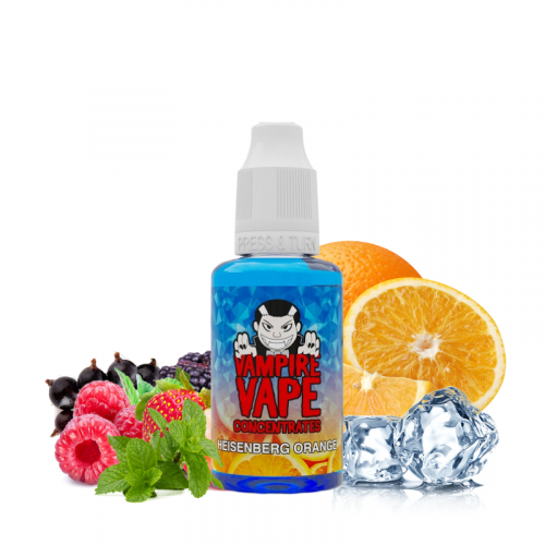 Toujours aussi frais et fruité, le célèbre Heisenberg se voit agrémenté de notes acidulées grâce à l'ajout d'arôme d'orange ! Découvrez Heisenberg Orange 30 ml de chez Vampire vape, un mix d'arômes de fruits rouges glacés et d'orange, pour des recettes DIY fruitées et toujours aussi givrées !
