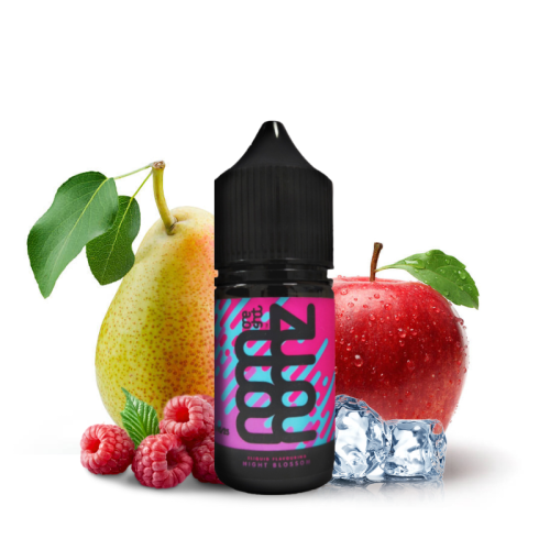 Poire juteuse, pomme acidulée et framboises sucrées dévoilent toutes leurs saveurs à travers des arômes de qualité rigoureusement sélectionnés par les aromaticiens de chez Nom Nomz! Avec le concentré Night Blossom 30 ml, vapez fruité... et bien glacé !
